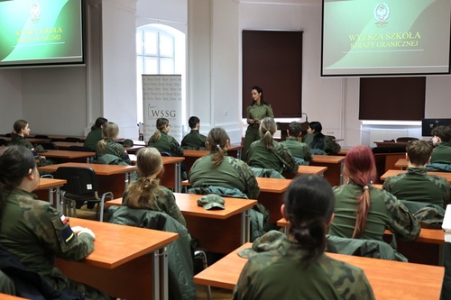 Podczas wizyty w WSSG uczniowie wzięli udział w zajęciach z zakresu historii Straży Granicznej, jej ustawowych zadań oraz elementów musztry i ceremoniału. Mieli również okazję zapoznać się z obszarem kompetencyjnym oraz bazą szkoleniową Uczelni, w tym m.in.: z salami specjalistycznymi, halą sportową, strzelnicą oraz trenażeramo wykorzystywanymi w szkoleniu funkcjonariuszy.