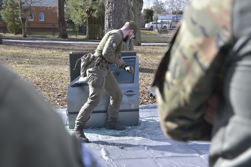 Dodatkowo funkcjonariusze mieli możliwość pokonywania przeszkód technicznych w postaci szyb samochodowych, co pozwoliło w warunkach kontrolowanych sprawdzić skuteczność tego narzędzia oraz poznać potencjalne zagrożenia związane z wybijaniem szyb i prowadzeniem interwencji przy pojeździe.