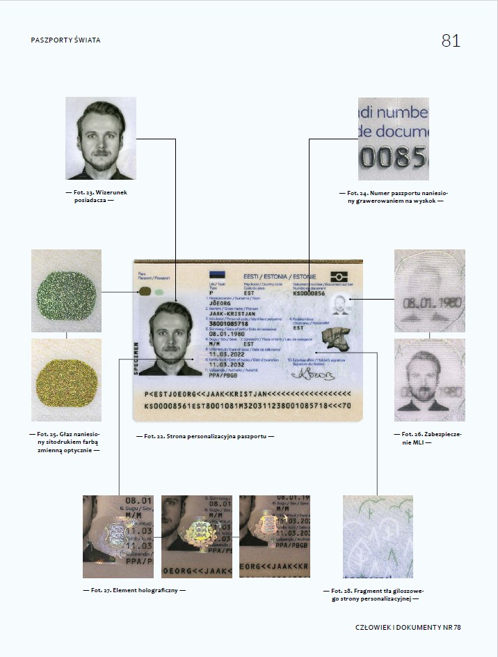 Dodatkowo, wizerunek właściciela jest chroniony przez jego wielokrotne powtórzenia, w tym zapis biometryczny w chipie, co stanowi silne zabezpieczenie przed fałszerstwem.