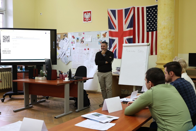 Spotkanie stanowiło platformę do pogłębienia współpracy międzynarodowej oraz wymiany doświadczeń w zakresie kształcenia językowego w środowisku służb mundurowych. W ramach seminarium przeprowadzono lekcje pokazowe, przygotowane przez lektorów Wyższej Szkoły Straży Granicznej oraz przedstawicieli uczelni partnerskich z Lubeki, Medininkai i Szczytna. Zajęcia odbyły się w trakcie trwającego intensywnego kursu języka angielskiego na poziomie B1, co umożliwiło praktyczne porównanie podejść dydaktycznych stosowanych w różnych szkołach. Podczas wydarzenia zorganizowanego przez Zespół – Studium Języków Obcych WSSG, lektorzy dzielili się dobrymi praktykami w nauczaniu języka obcego, rozwijaniu kompetencji komunikacyjnych słuchaczy oraz wykorzystaniu nowoczesnych technologii w dydaktyce.