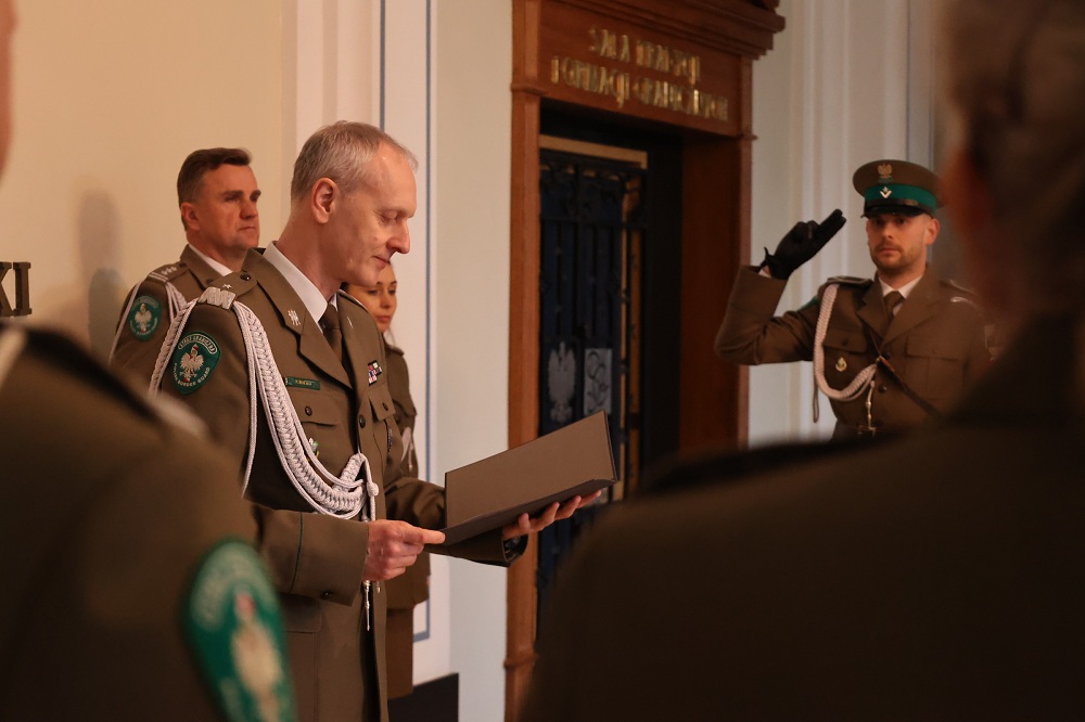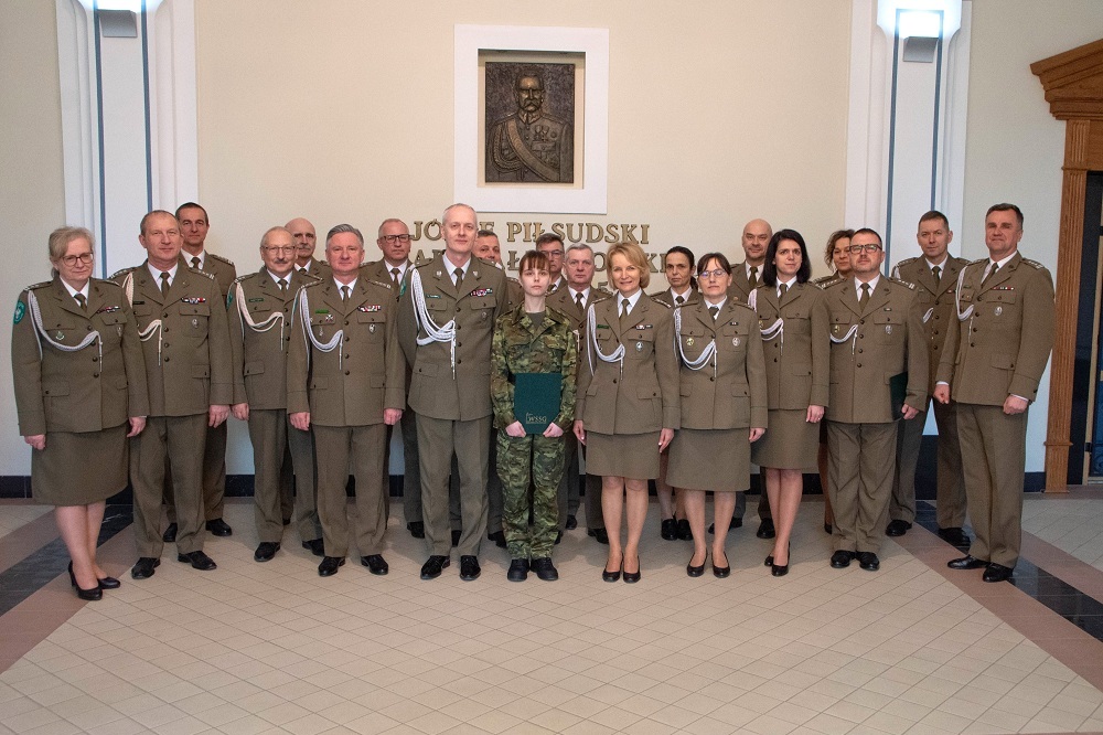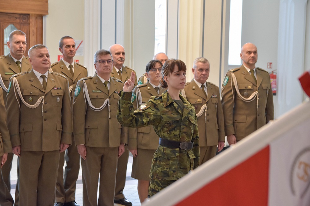 Ślubowanie w obecności kadry kierowniczej Uczelni oraz pocztu sztandarowego przyjął Rektor-Komendant gen. bryg. SG dr Piotr Boćko, życząc naszej młodszej koleżance powodzenia w służbie oraz satysfakcji z wykonywania powierzonych zadań służbowych.