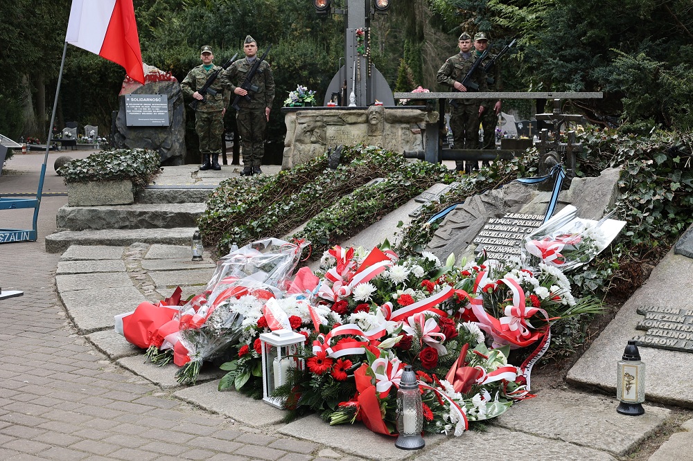 Przy Pomniku Martyrologii Narodu Polskiego na Cmentarzu Komunalnym w Koszalinie zebrani wspólnie oddali hołd pomordowanym. Naszą Uczelnię reprezentował Kwestor Wyższej Szkoły Straży Granicznej płk SG Ryszard Szpura oraz poczet sztandarowy WSSG. Tradycyjnie w uroczystościach uczestniczyli również uczniowie Szkoły Podstawowej nr 10 w Koszalinie ze sztandarem rozwiązanego koszalińskiego Stowarzyszenia Rodzina Katyńska, który znajduje się pod opieką Uczelni.