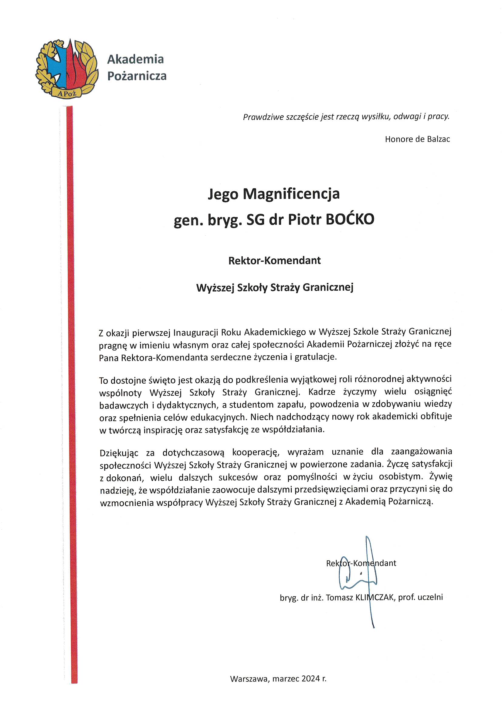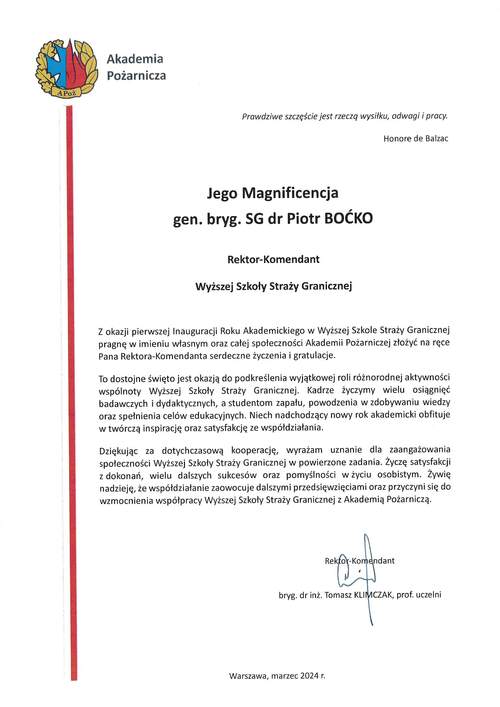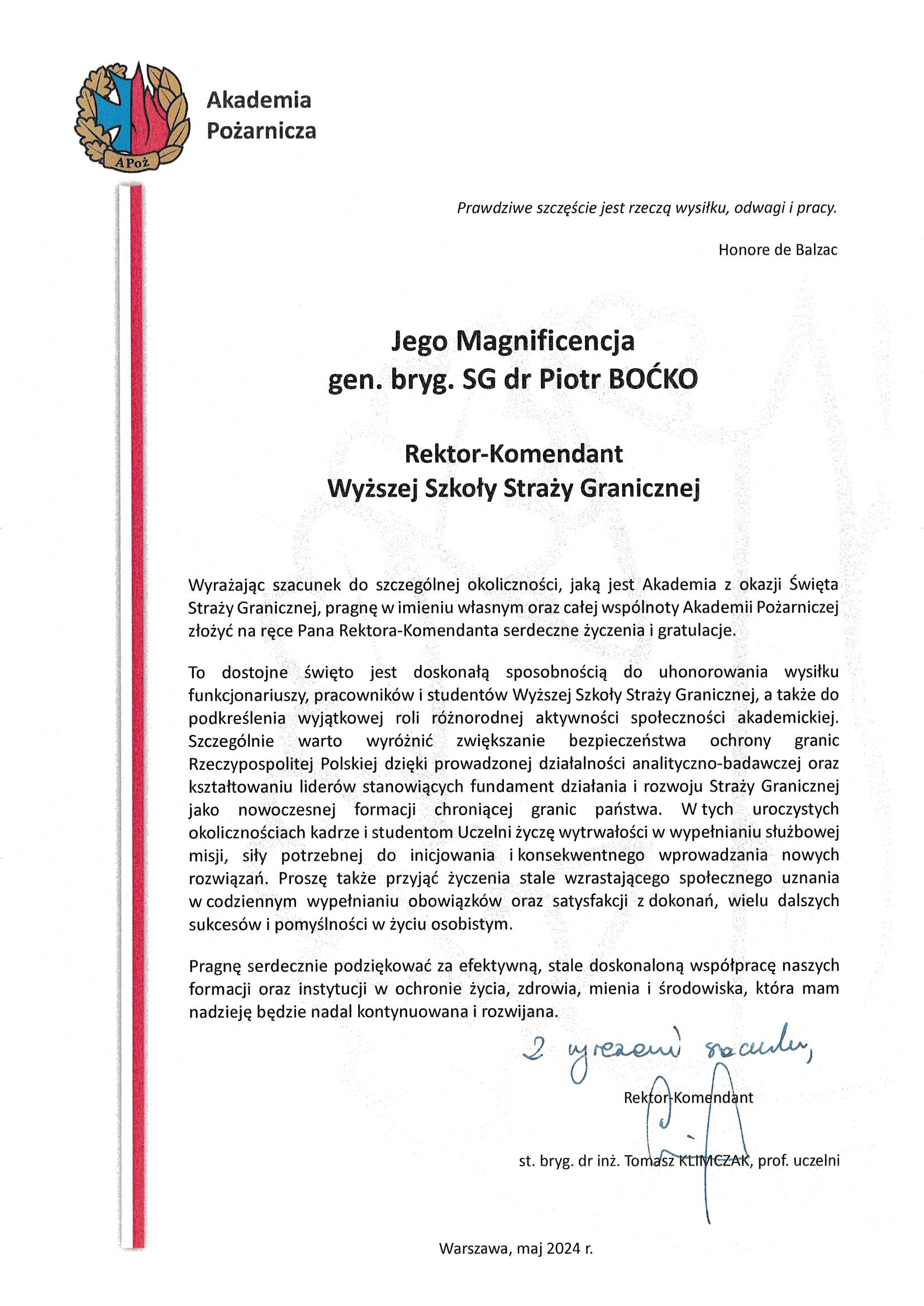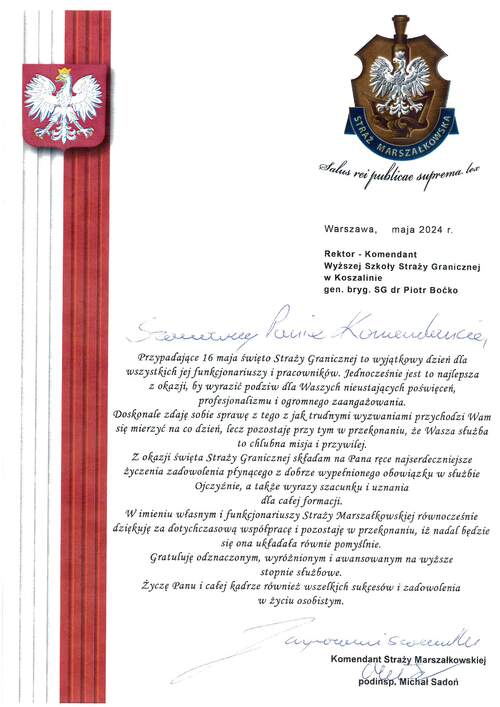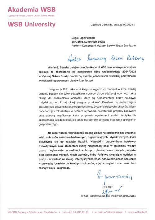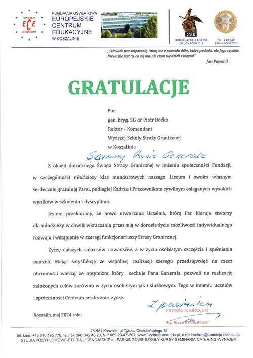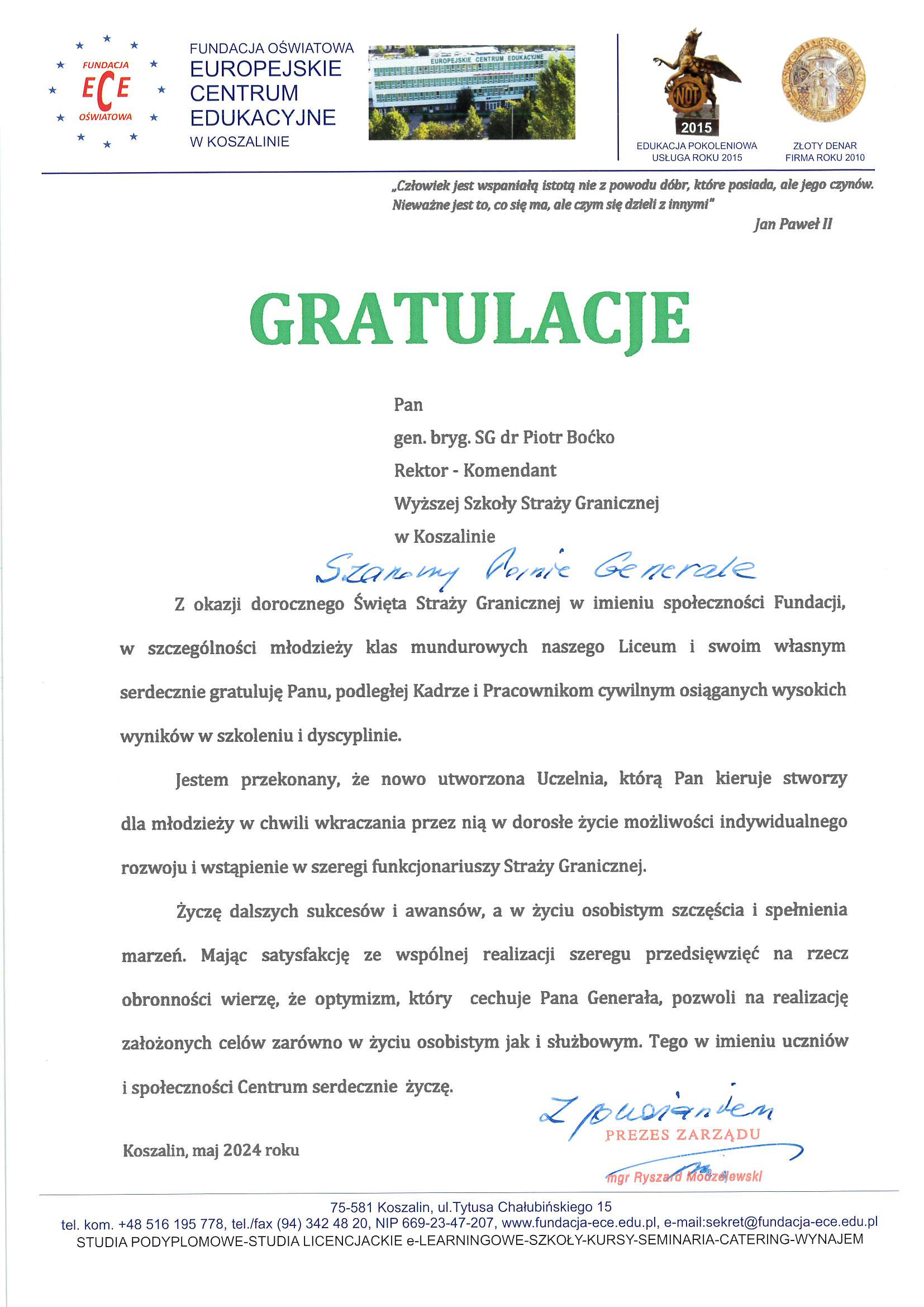 Podziękowania i gratulacje 2024 r. - Podziękowania i gratulacje